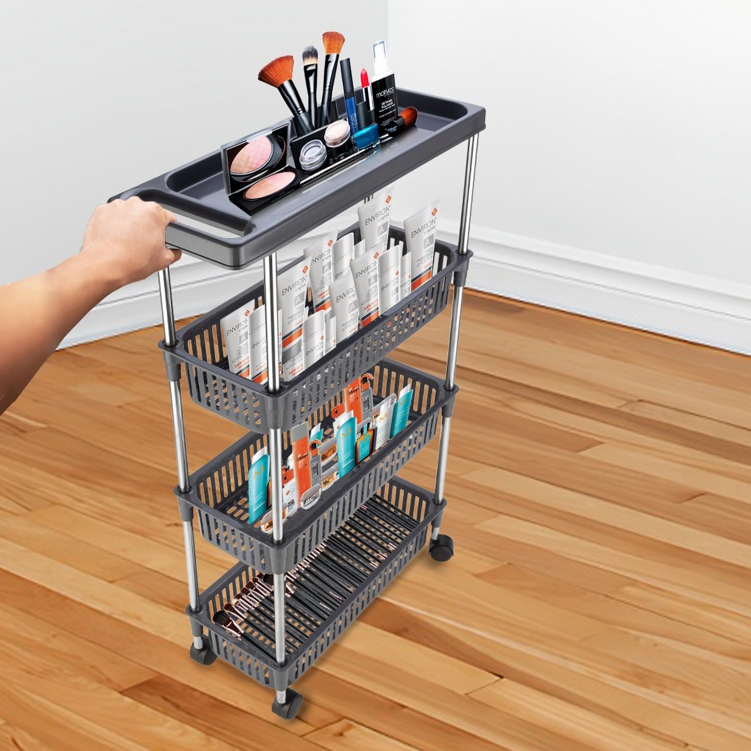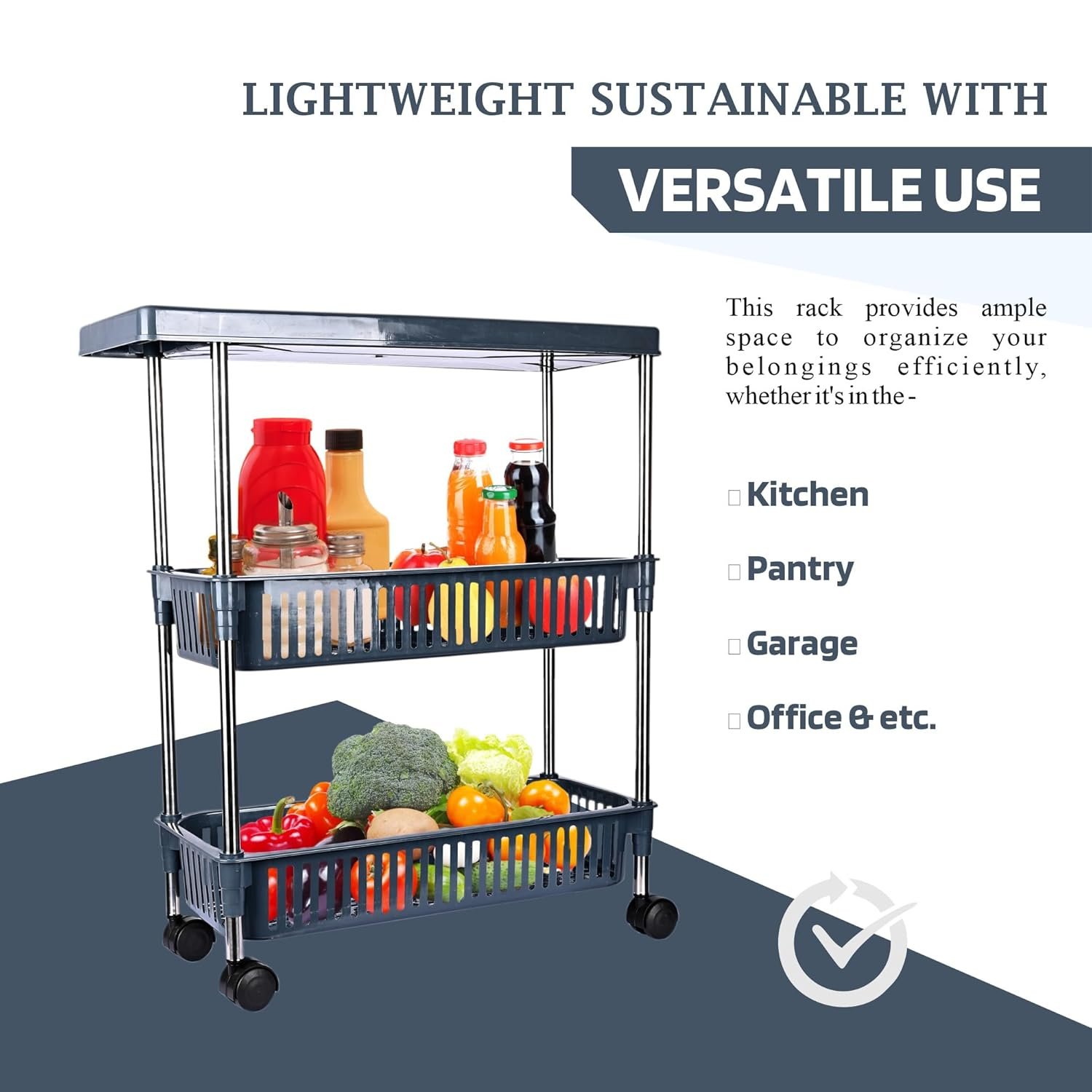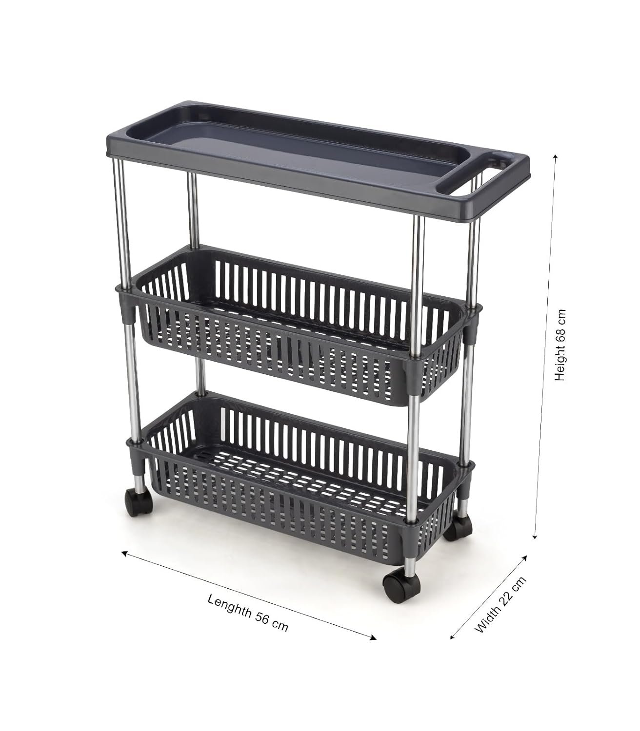 Keep your home organized with this slim rolling kitchen storage trolley designed to maximize small spaces. Featuring durable plastic baskets and strong stainless steel pipes, it provides stable storage for groceries, kitchen supplies, toiletries, and household essentials. The smooth wheels and handle allow easy movement, while the compact design fits perfectly between narrow spaces in kitchens, bathrooms, or laundry areas.